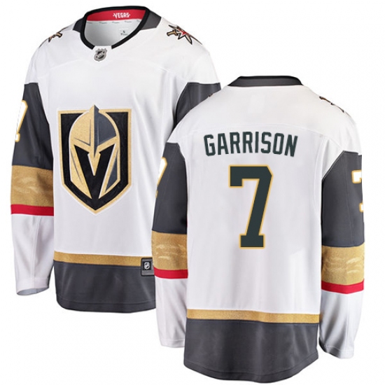 Home>NHL>Vegas Golden Knights>Jason Garrison>Youth Vegas Golden Knights #7 Jason Garrison Authentic White Away Fanatics Branded Breakaway NHL Jersey