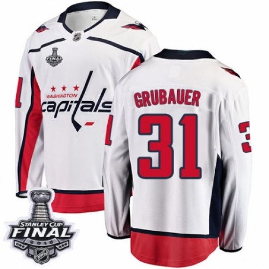 Youth Washington Capitals #31 Philipp Grubauer Fanatics Branded White Away Breakaway 2018 Stanley Cup Final NHL Jersey