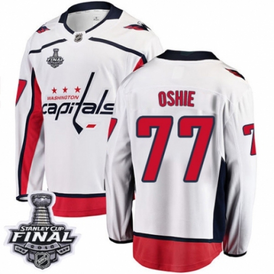 Men's Washington Capitals #77 T.J. Oshie Fanatics Branded White Away Breakaway 2018 Stanley Cup Final NHL Jersey