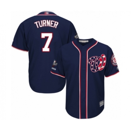 >Youth Washington Nationals #7 Trea Turner Authentic Navy Blue Alternate 2 Cool Base 2019 World Series Champions Baseball Jersey